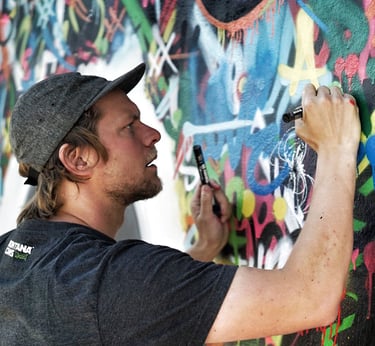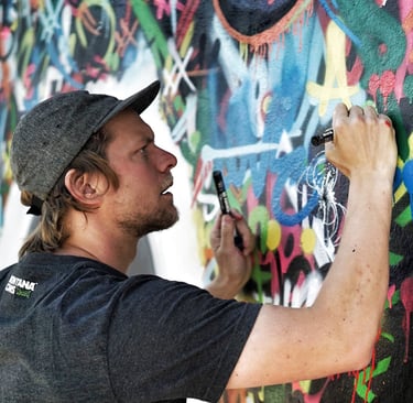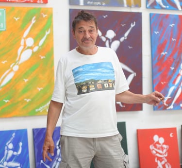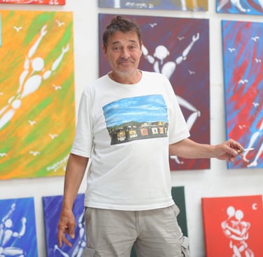 Artiste peintre et street artist français connu pour son personnage emblématique "l’Homme en blanc", symbole de paix, de force et de liberté, qu’il peint sur les murs du monde entier depuis 1983. Son travail lie poésie visuelle et expression urbaine, apportant une touche humaniste à l’espace public.
